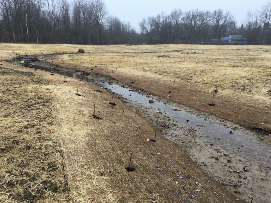 The restoration design used a “bioengineering approach,” which incorporates hard structures such as rock and also vegetation, which helps stabilize streambank soils and rock as it grows over time. The project added more natural “sinuosity” or curviness to the previously straightened stream channel and reconnected the stream to its natural floodplain. Floodplains are low areas along a stream which allow the stream to spread out, slow down, and soak into the ground during and after flood events. Floodplains are important for dissipating the erosive energy of high flow floodwaters and filtering out pollutants from water. Streambank erosion jeopardizes nearby infrastructure and contributes excessive sediment and pollutants to downstream areas, leading to unhealthy habitat conditions for aquatic life.